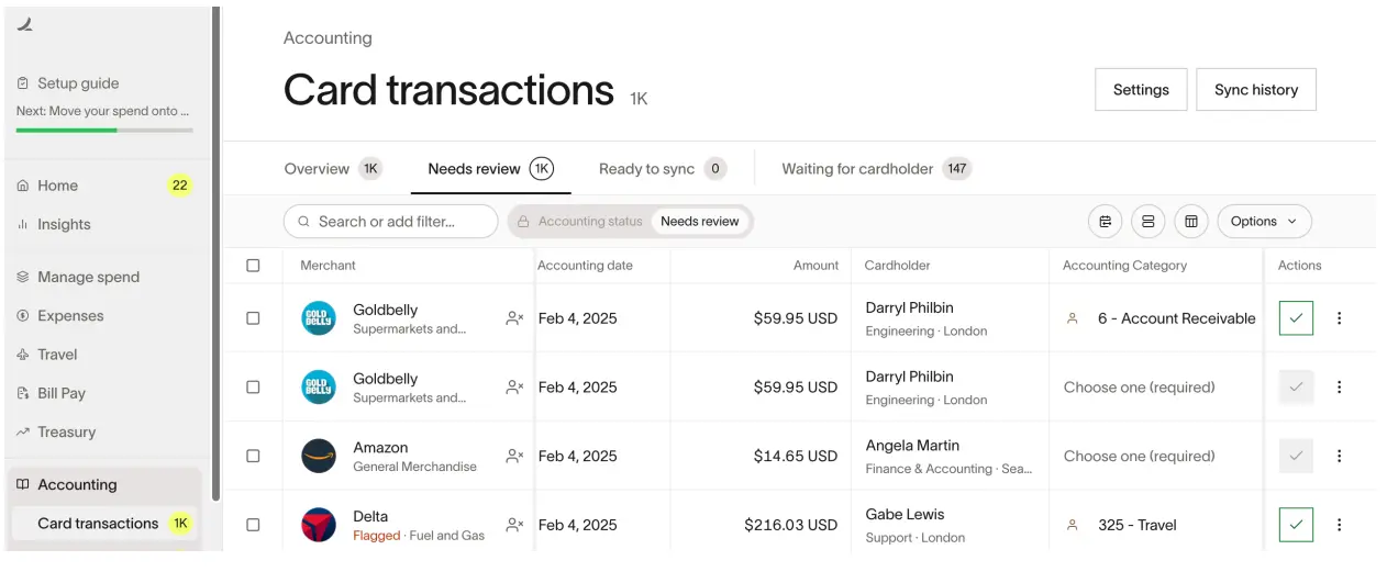 Chart of Accounts can be mapped into transactions, reimbursements and bills.
