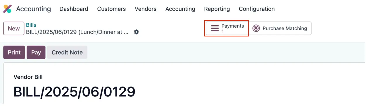 - Bill Status: Once the payment is synced, the bill status in Odoo changes to "In Payment.