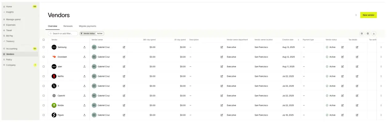Odoo POs sync into Ramp automatically, including vendor details, dates, and line items. This gives teams full visibility under Manage Spend → Purchase Orders.
