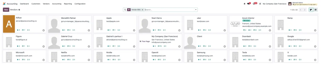 - Data Mapping: Each vendor's key details such as name, contact information are mapped and sent to Odoo.